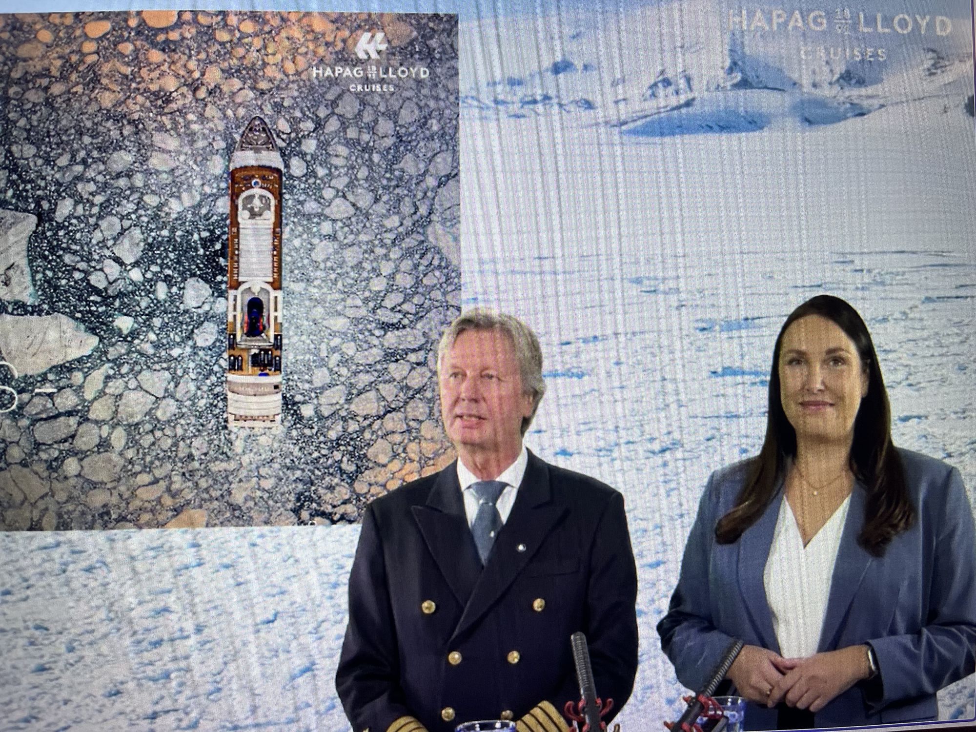 Frau Sandra Senft und Kapitän Ulf Wolter gaben spannende Einblicke in die Welt der Expeditionskreuzfahrten der weltweiten #1 in diesem Segment, nämlich Hapag-Lloyd Cruises.