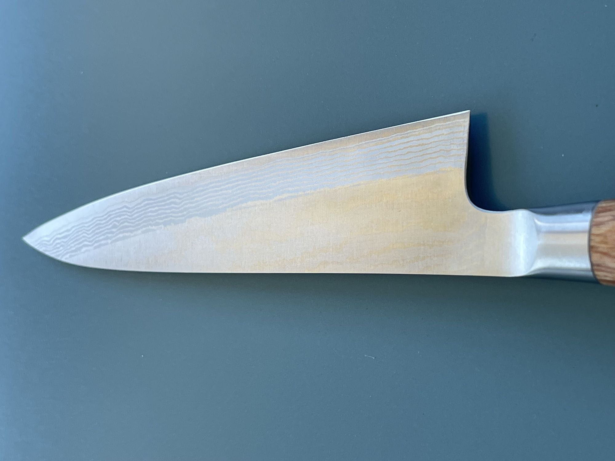 Katsuyasu Kamo Petty 150 – japanisches Damaststahl Messer für präzises Arbeiten mit mehr Reichweite