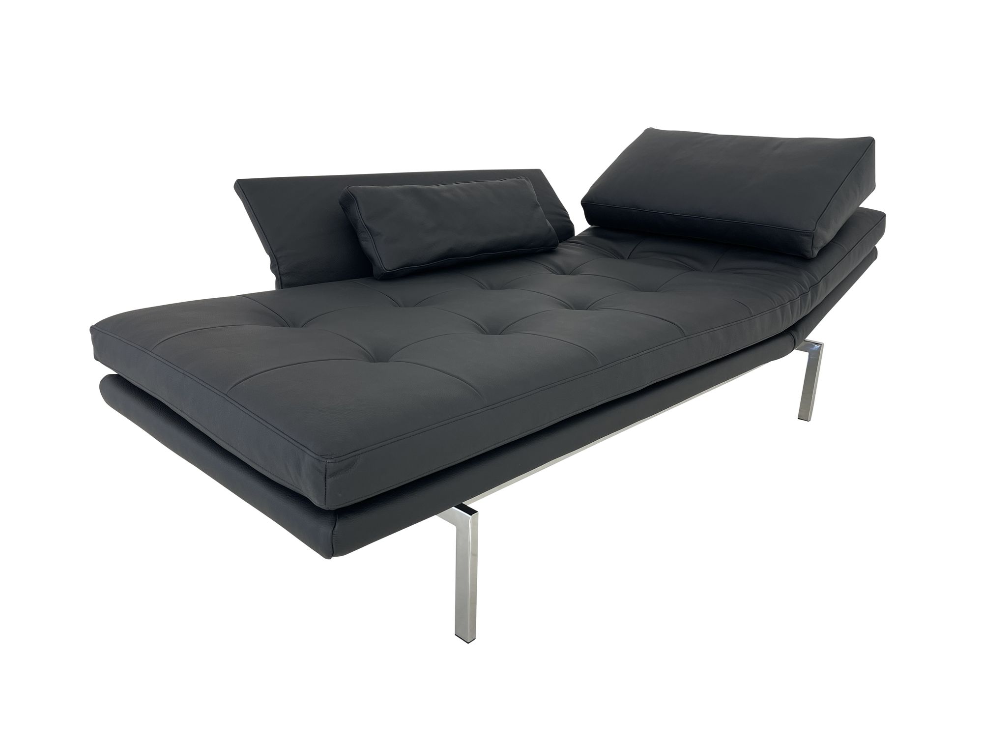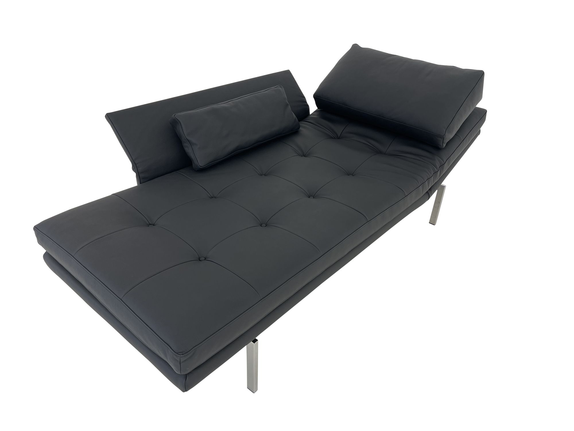 SIGNET FIDU Liege Recamiere Daybed mit klappbarer Rücken- & Seitenlehne mit Kissen in Leder schwarz